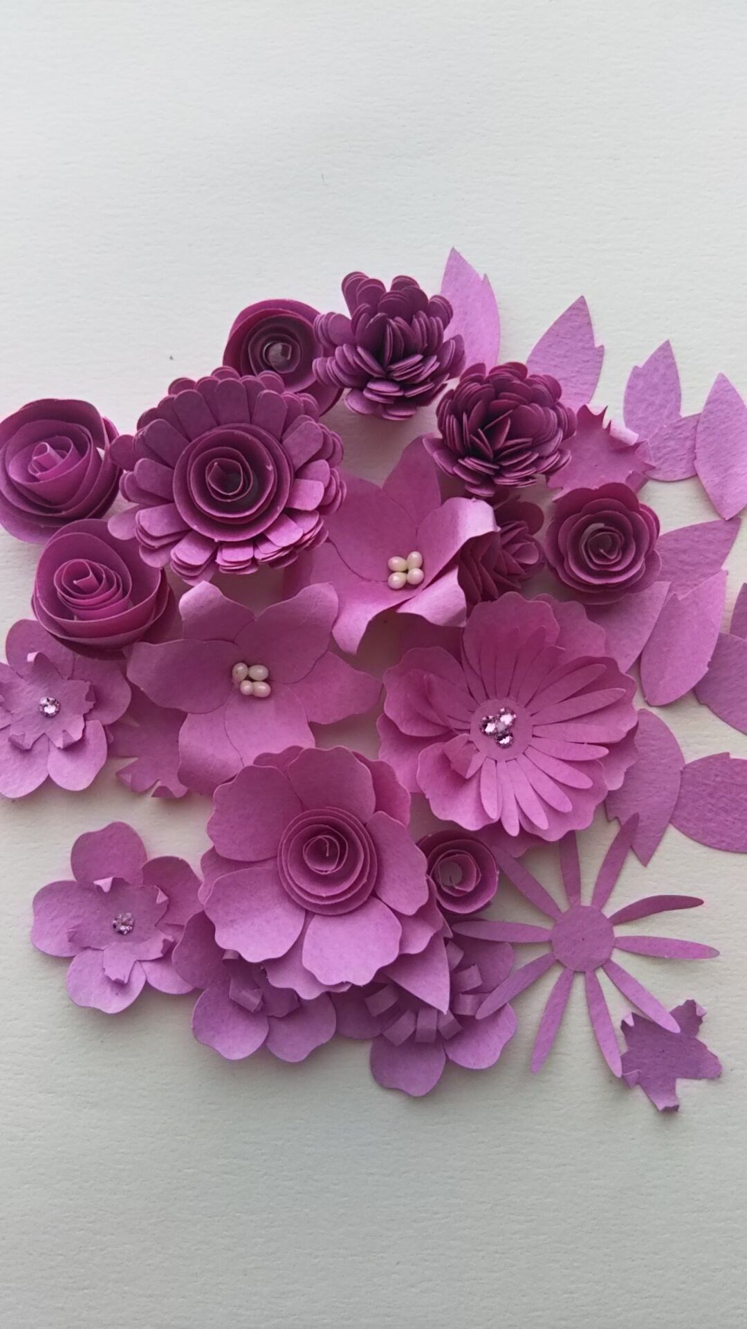 今回は組み立てたり巻いたりして立体的に作られたお花が15個前後