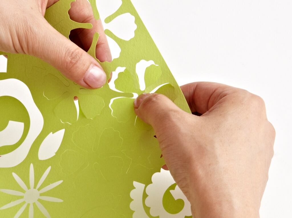切り目の入った紙から図柄を抜き取り、巻いて立体的にすることで、素敵なお花が完成!違う図柄の花びらと重ねてみると、違った表情のお花になる楽しみもあります。いろいろ試してみてくださいね。