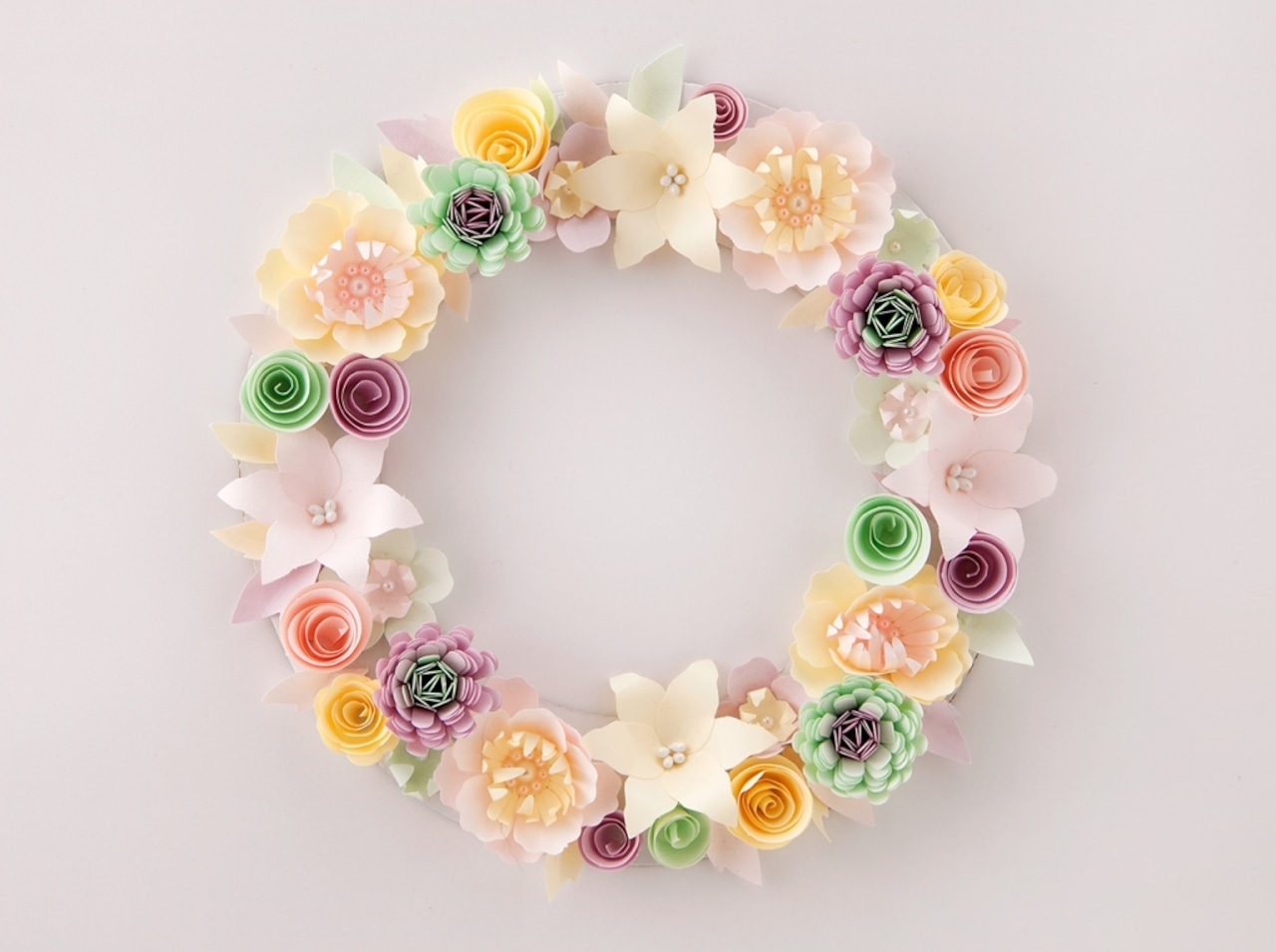 12種類以上のお花を手軽に作ることができます。切り目の入った紙から図柄を抜き取り、巻いて立体的にすることで、素敵なお花が完成します。